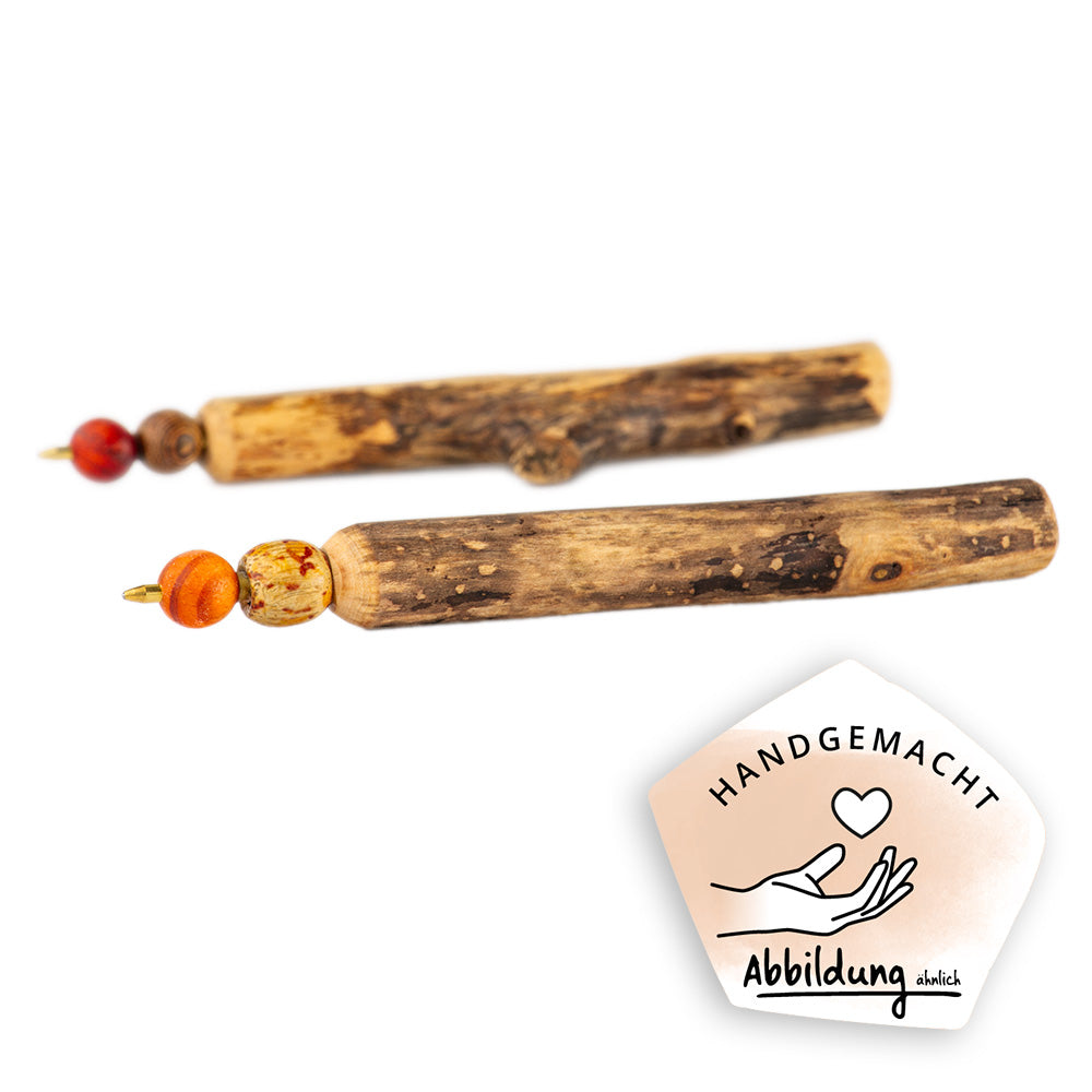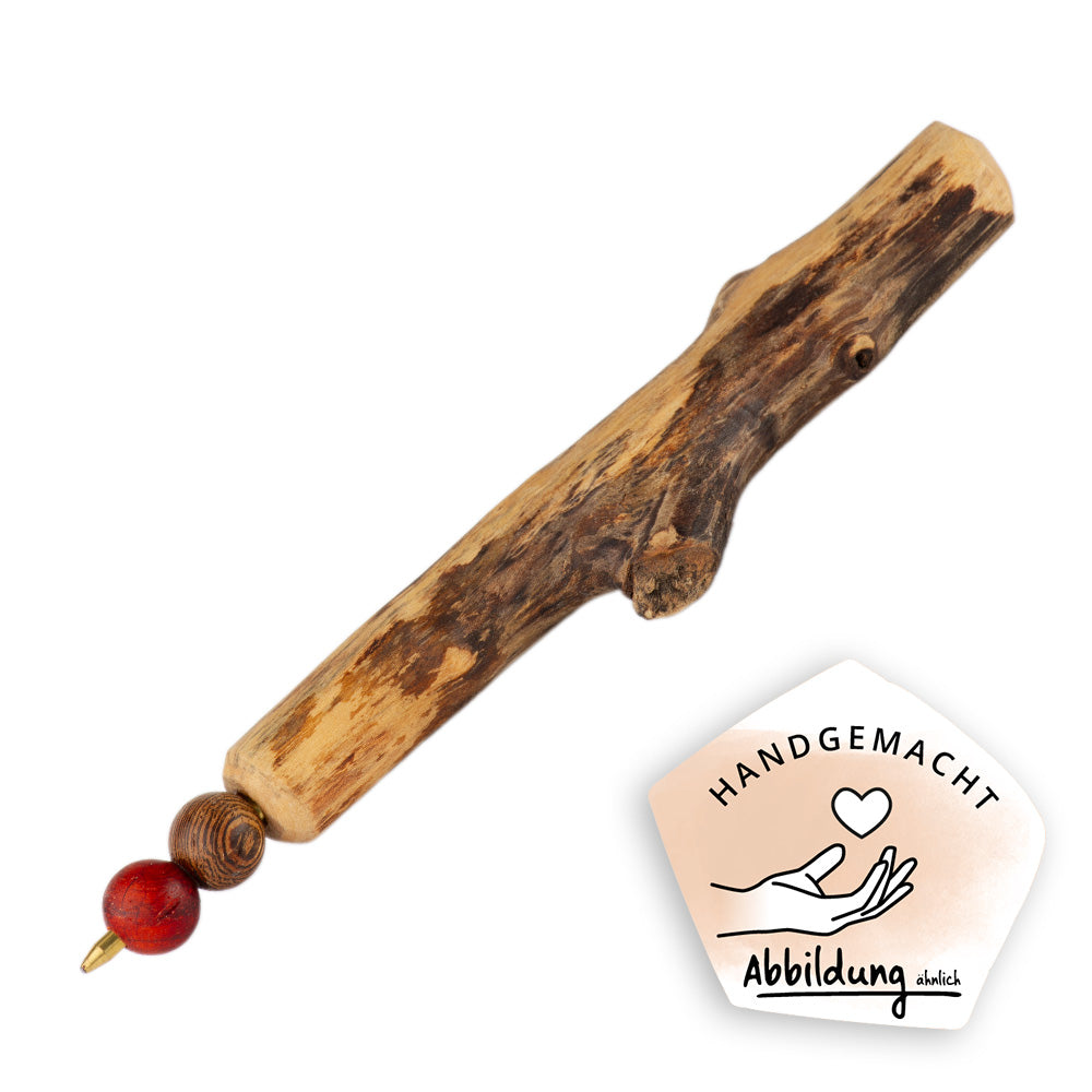 Jeder Astkugelschreiber kommt mit einem Halterung und ist in seiner Wuchsform ein natürliches Unikat – Abbildung ähnlich.