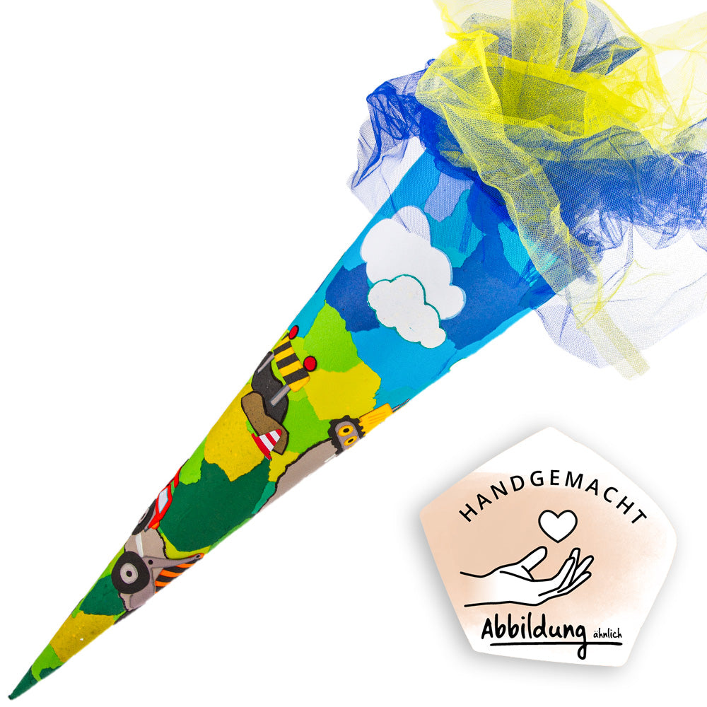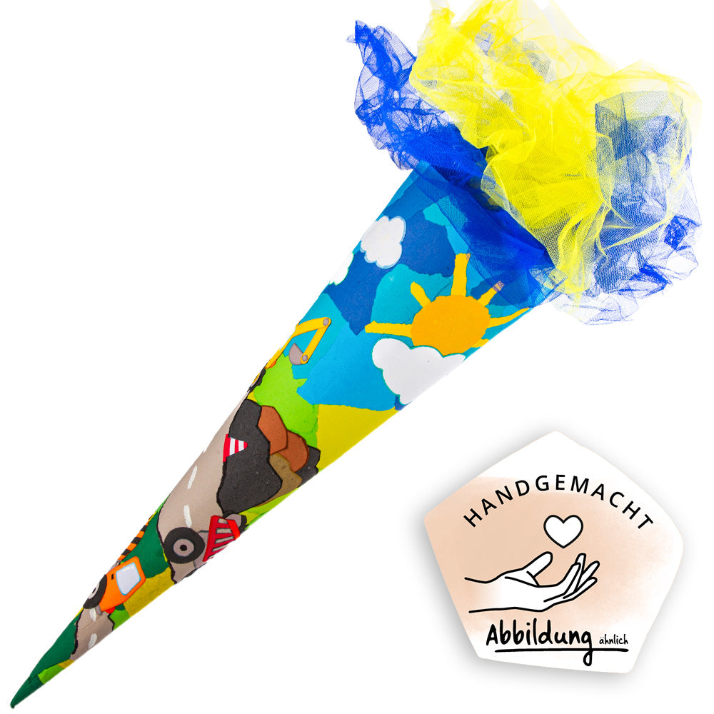 Tauche ein in die bunte Welt der Abenteuer mit unserer liebevoll gestalteten Schultüte "Baustelle" – ein ganz besonderes Highlight für den ersten Schultag! Jede Tüte wird in sorgfältiger Handarbeit hergestellt und überzeugt durch hochwertige Materialien und individuelle Details.