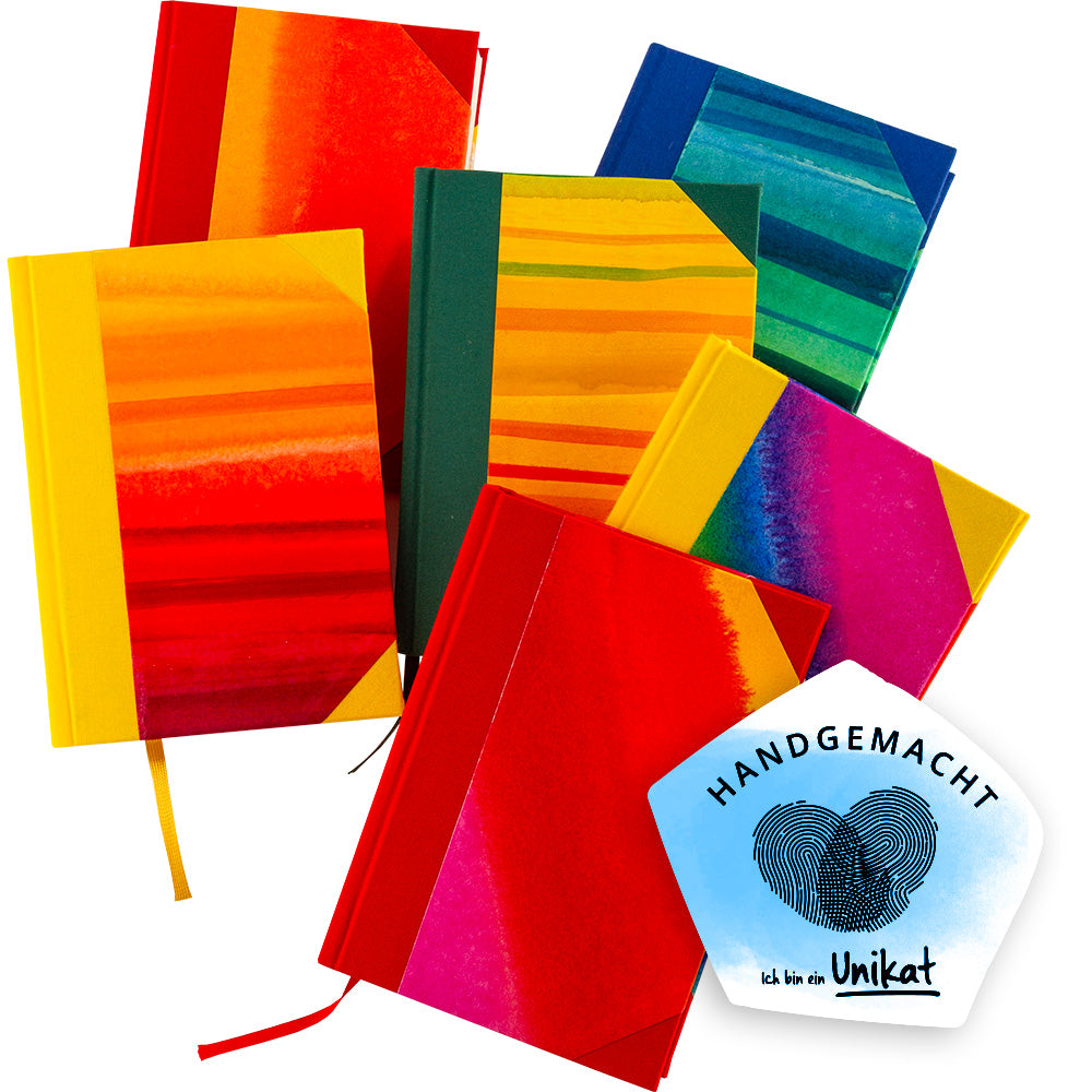 Jedes Notizbuch ist durch den handgestalteten Umschlag ein Unikat – Abbildung ähnlich.